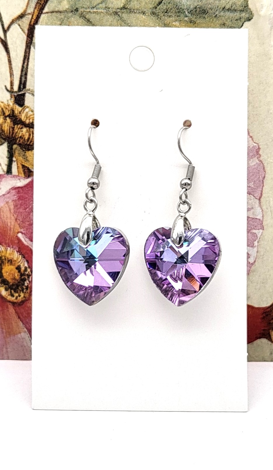 een blinkende hartvormige kraal in zacht paars