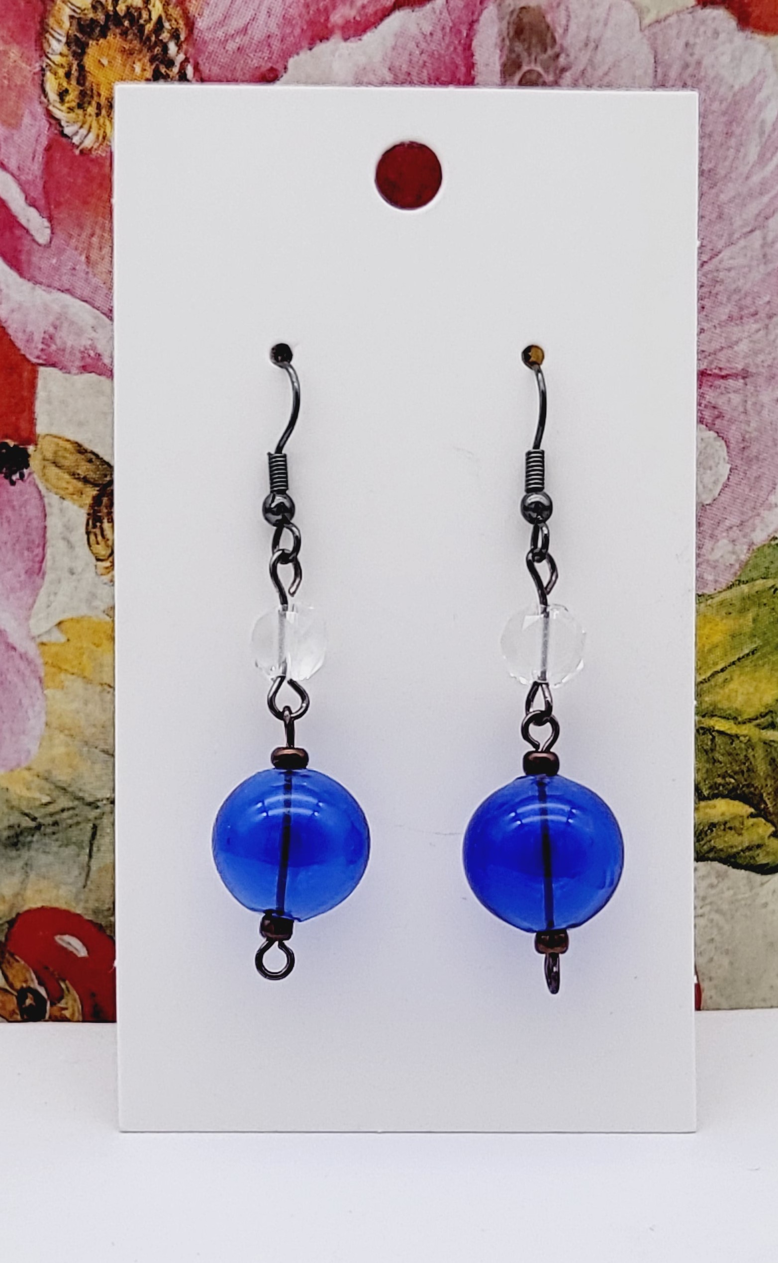 inktblauwe holle kralen, met een klein wit geslepen glazenkraaltje