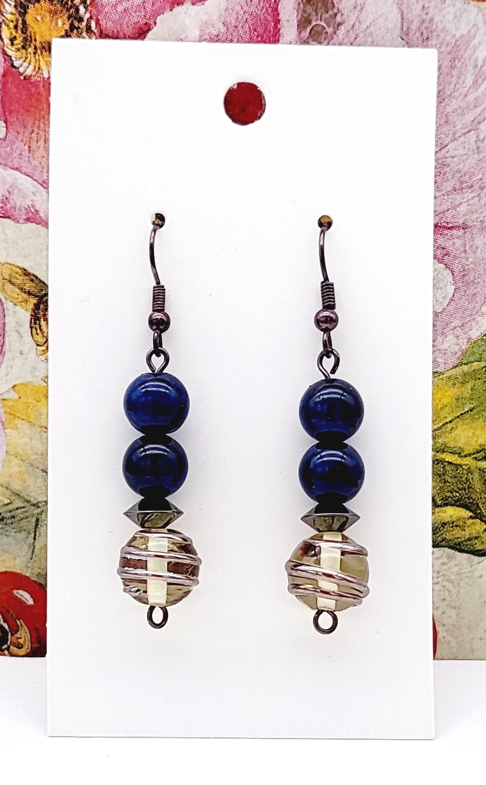 inktblauwe ronde kralen, mooie champagne kleur kraal in reliëf