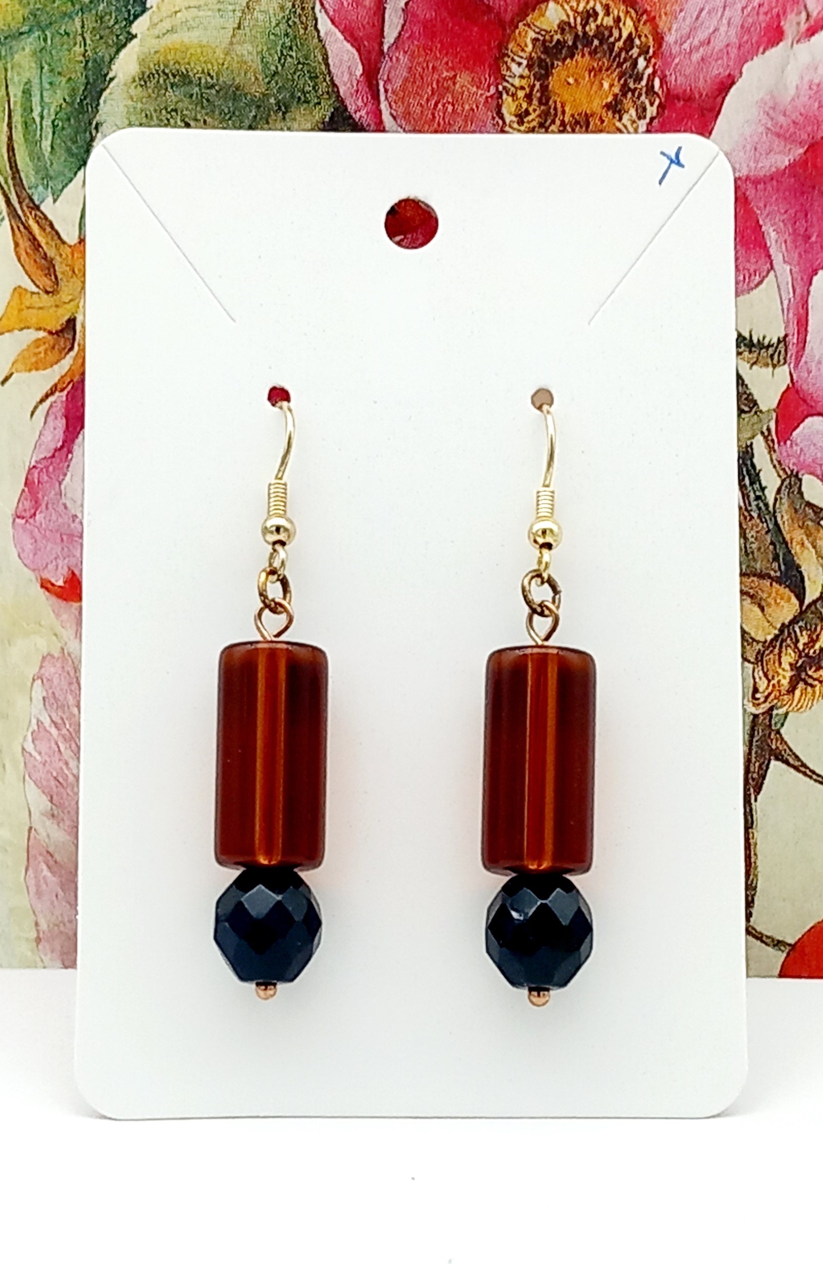 bruine kraal glas, zwarte kraal halfedelsteen agaat facet geslepen