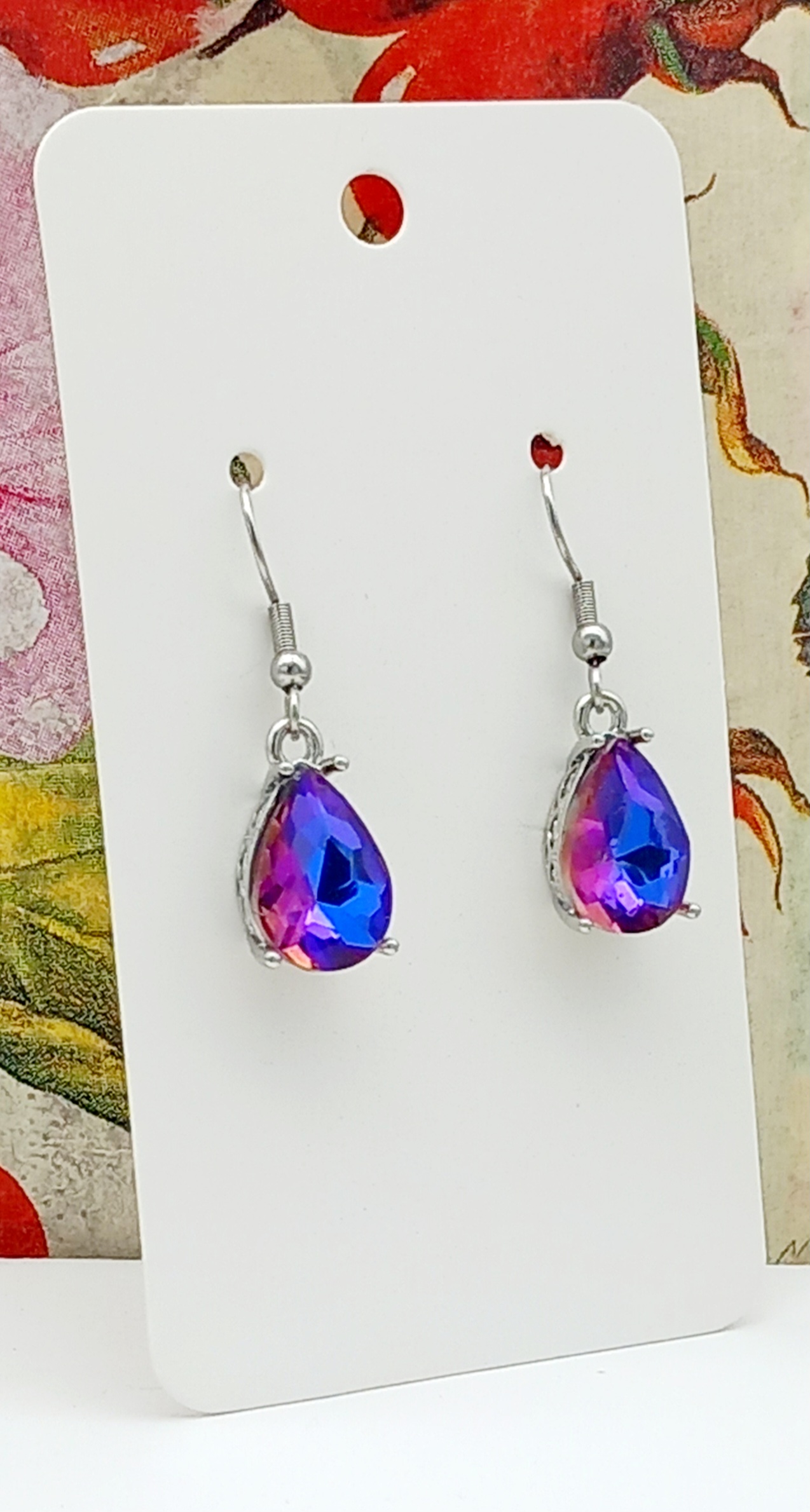 dieppaarse druppel van kristal in opengewerkt kastje