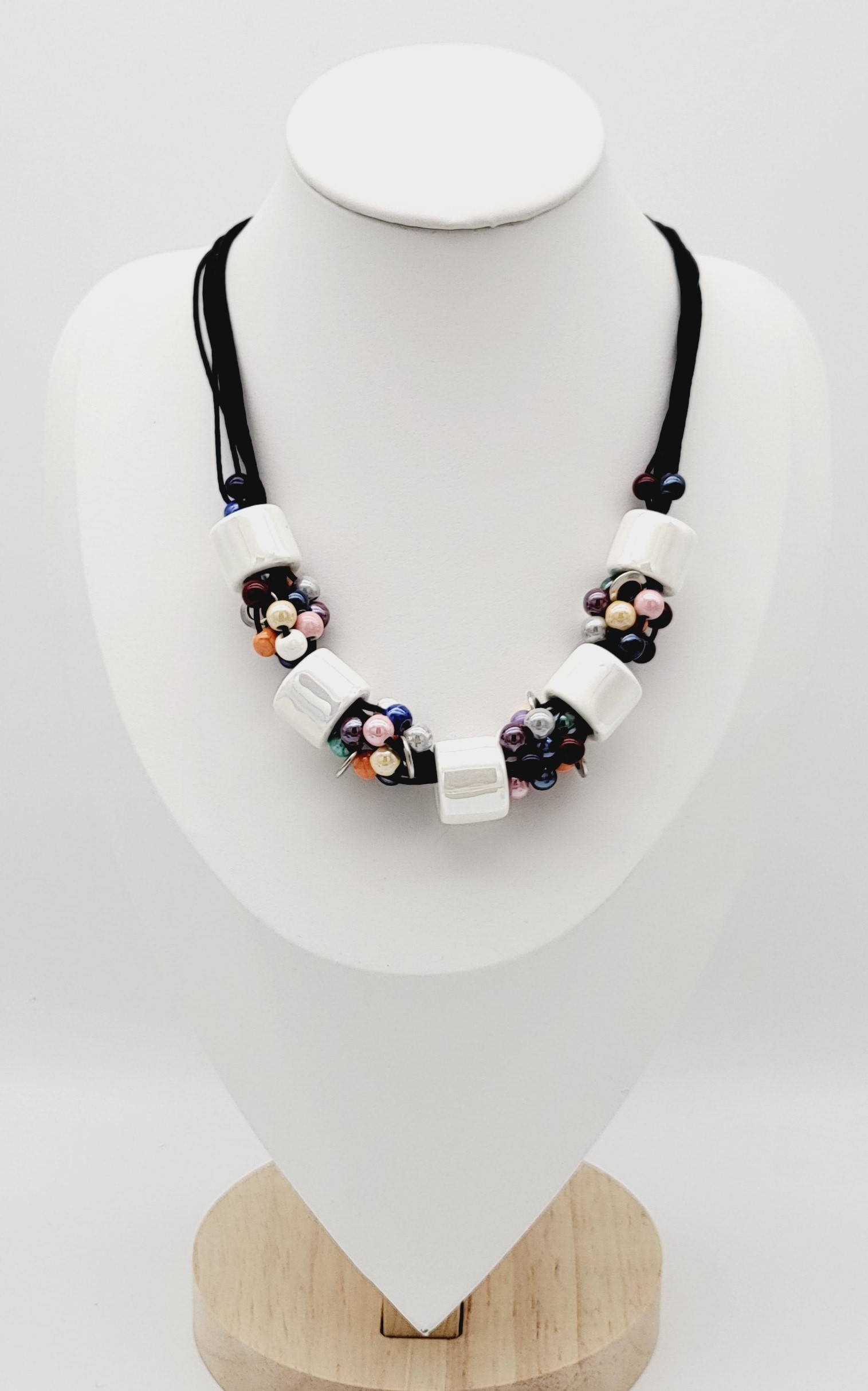 witte ronde kralen van keramiek, vrolijke meerkleurige ronde kraaltjes van keramiek
